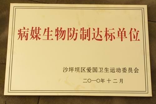 在沙区爱卫会和卫生监督所的大力指导下,今年我校积极开展了各项环境综合治理工作,及时清理卫生死角,铲除“四害”孳生地,加大对病媒生物消杀力度,增加消杀频次,坚持药物消杀与环境整治相结合的原则,把我校蟑螂、鼠、蚊、蝇控制在创卫标准之内,表现突出,获得了沙区爱国卫生运动委员会颁发的“病媒生物防治达标单位”荣誉称号。