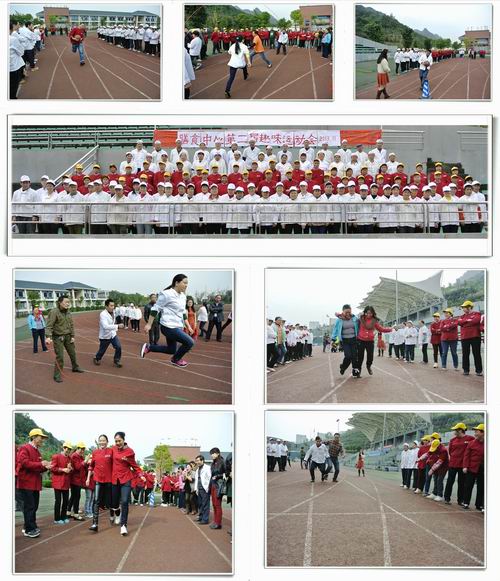2013年11月,一个晴朗的午后,学校运动场西北侧,一百多人或白衣白帽,或红衣黄帽,个个尽头十足,情绪高昂,“加油”声阵阵……,后勤集团膳食中心正举行第二届趣味运动会。