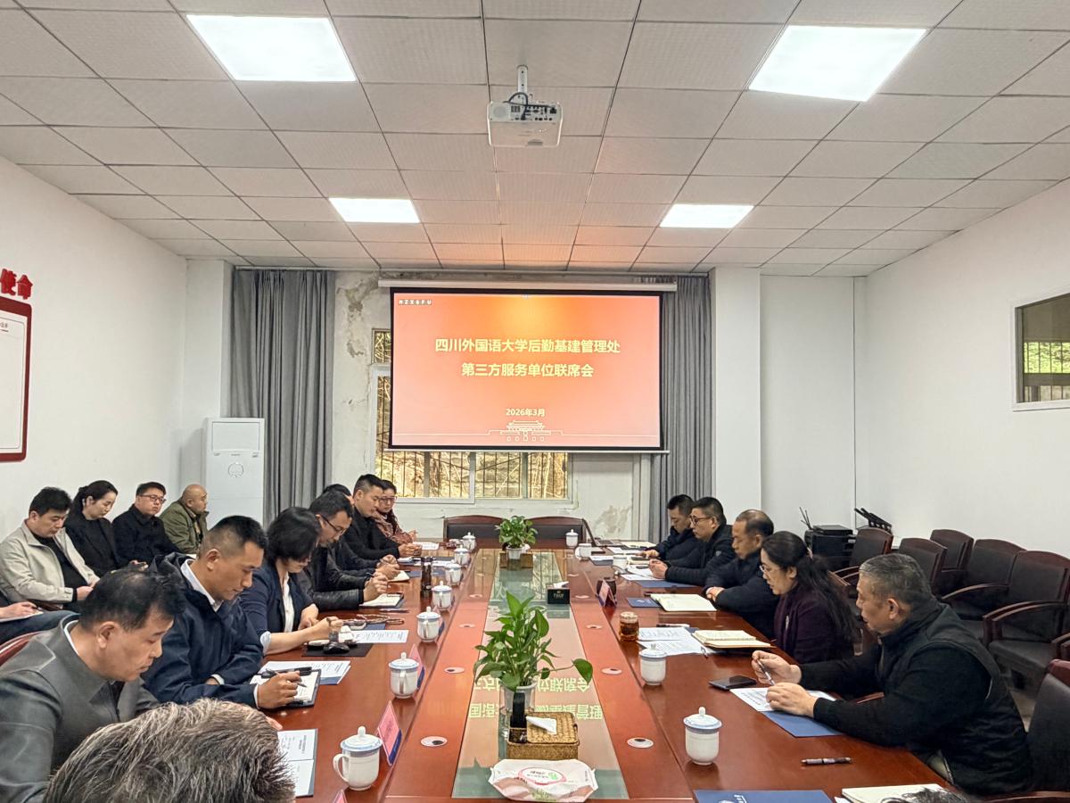 本次会议在后勤基建管理处207会议室举行,多家为学校提供餐饮、物业、绿化、修缮、能源等服务的第三方单位代表共同参会。会议首先由后勤基建管理处领导班子通报了近期学校在后勤保障、基础建设、安全生产、环境治理等方面的重点工作进展,并就日常管理中发现的问题、师生反馈集中的意见建议以及新学期的服务标准与要求,向各服务单位作了详细说明。